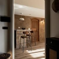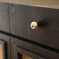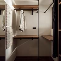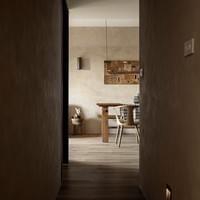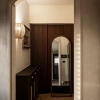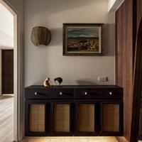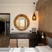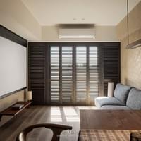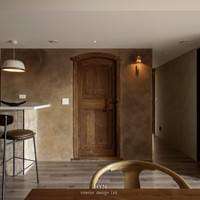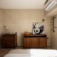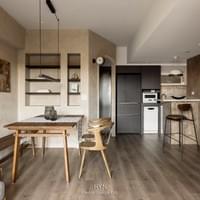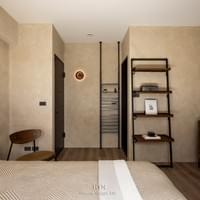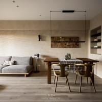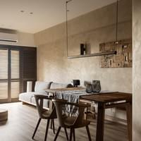 融合侘寂美學,打造出一個兼具深度與質感的療癒之所。從焦糖般溫潤的米色肌理牆,其手作紋理捕捉並柔化了每一道光線,到可可般的深棕實木傢俱,空間中每個元素都散發著熟成的魅力。設計細節處處體現對本質的尊重,採用原木、亞麻布料、礦物塗料牆等自然媒材,強調可觸摸的真實感,希望讓居住者在觸感與視覺上都能感受放鬆與安定,無論是客餐廳的沉穩大器,還是臥室的靜謐柔和,都引導著居住者放慢腳步。光線透過木百葉窗灑落,在布藝沙發與素雅的寢具上跳躍出豐富的層次感。